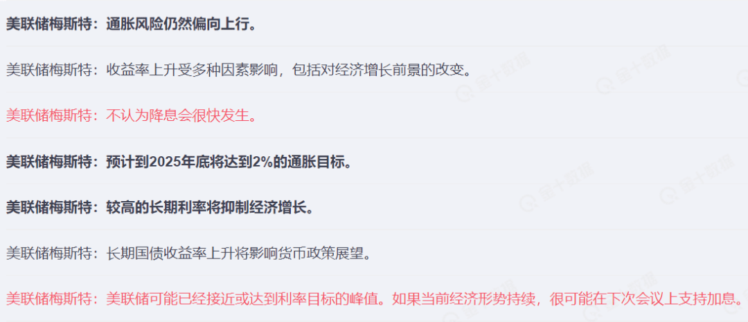 不过,梅斯特也表示,最终决定将取决于经济的发展,并指出,美国汽车工人联合会(UAW)成员可能延长罢工时间,以及政府可能关门等因素,都是通胀和经济增长前景面临的风险。