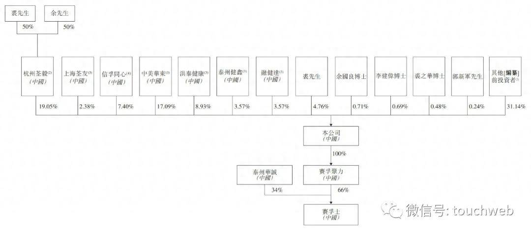 IPO前,杭州荃毅持股为19.05%,上海荃友持股为2.38%,信孚同心持股为7.4%,中美华东持股为17.09%,洪泰健康持股为8.93%,经纬中国持股为4.69%,泰州健鑫、融健达分别持股为3.57%;