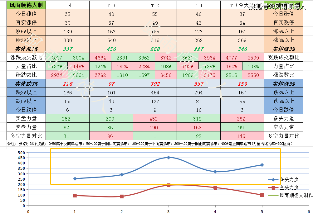 1、整体数据分析:跌3%个股167家,涨3%个股369家,实体涨停34家,当天跌停3家,做多力道382,做空力道99。
