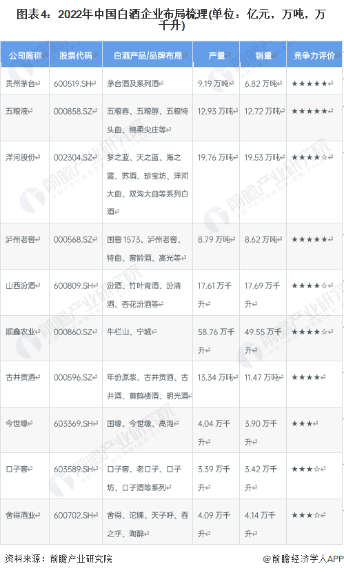 4、中国白酒行业企业布局及竞争力评价