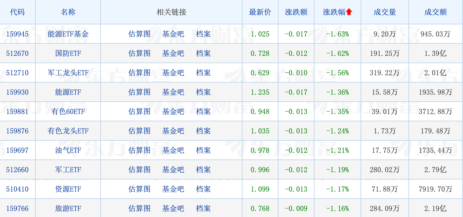 下跌方面,油气概念股陷入调整,仁智股份、贝肯能源跌停。受此影响,能源、油气相关ETF全线走跌,最高下跌1.63%。