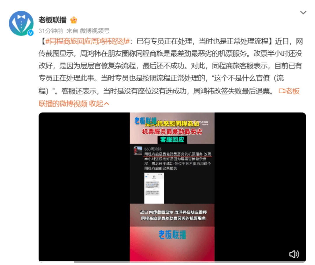 一位机票从业者刘秉(化名)认为:“对平台而言,分销代理与航司售卖之间本就存在流程周转,会有时间差。”他补充道,“不过,周鸿祎也只是以一名用户的身份,表达了自己的糟糕体验。”