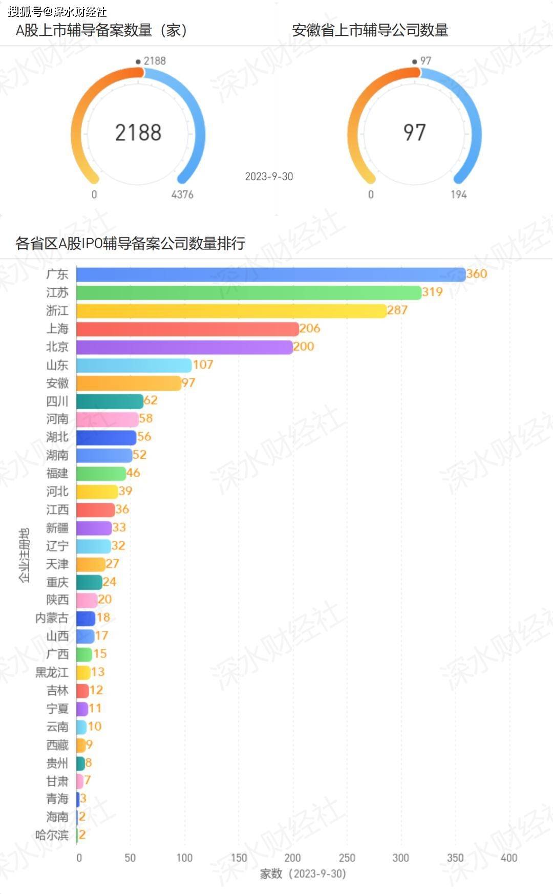 截至9月末,A股共有2188家企业在排队上市辅导,安徽有97家,在全国各省区排在第七位。