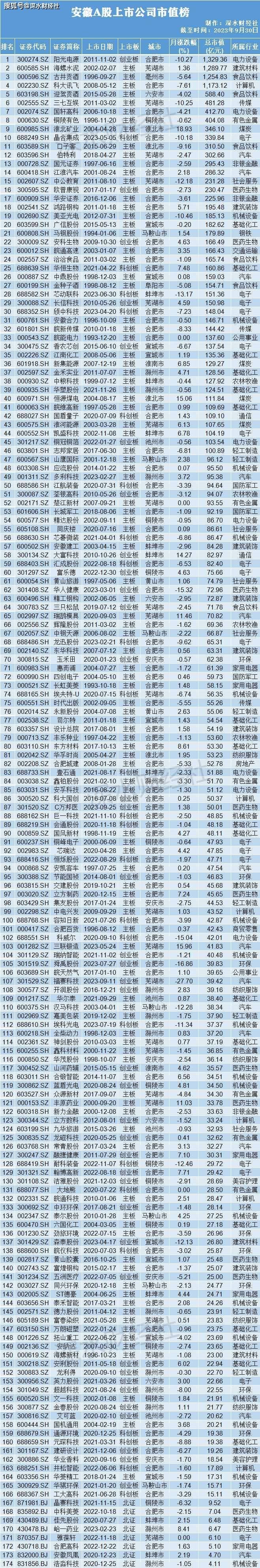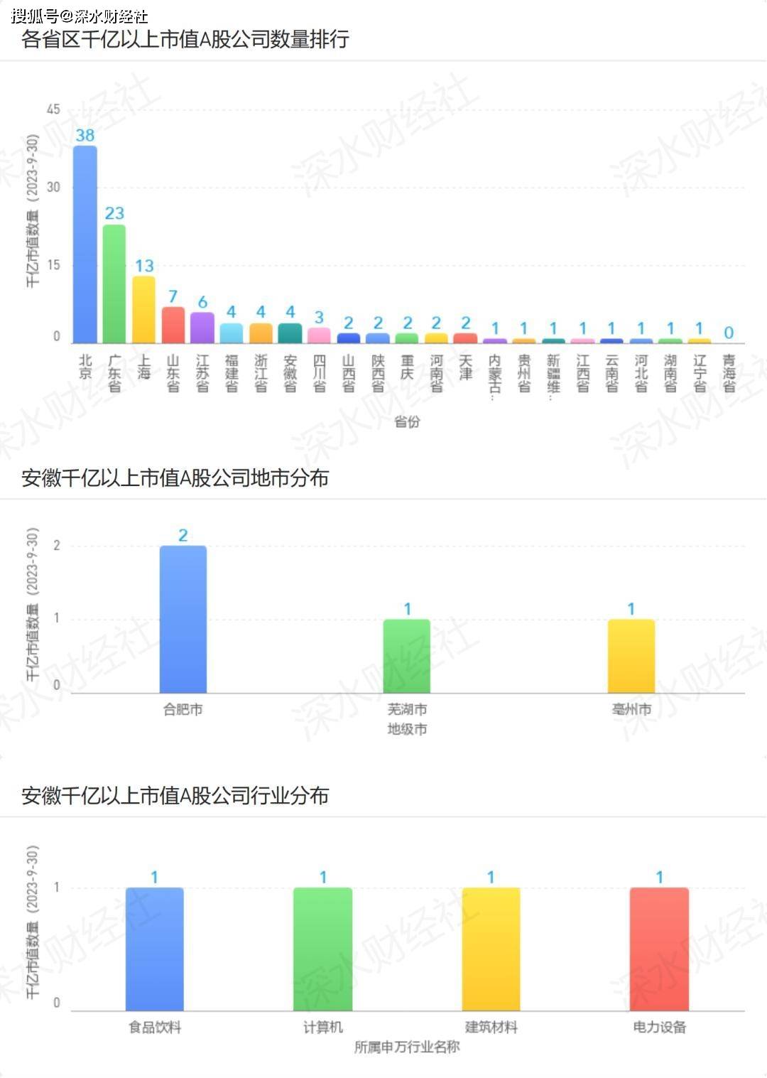 截至9月末,安徽拥有4家千亿市值上市公司,和上月持平,在全国各省区排第六,与福建、浙江并列。
