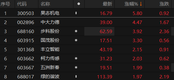 原标题:机器人执行器概念股午后拉升 昊志机电涨超5%