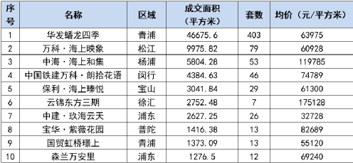 表:上海商品住宅成交TOP10(2023.9.29 -2023.10.6)