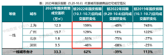 据中指研究院统计,今年国庆假期期间,上海日均新房成交面积同比上涨159%,广州同比上涨129%。