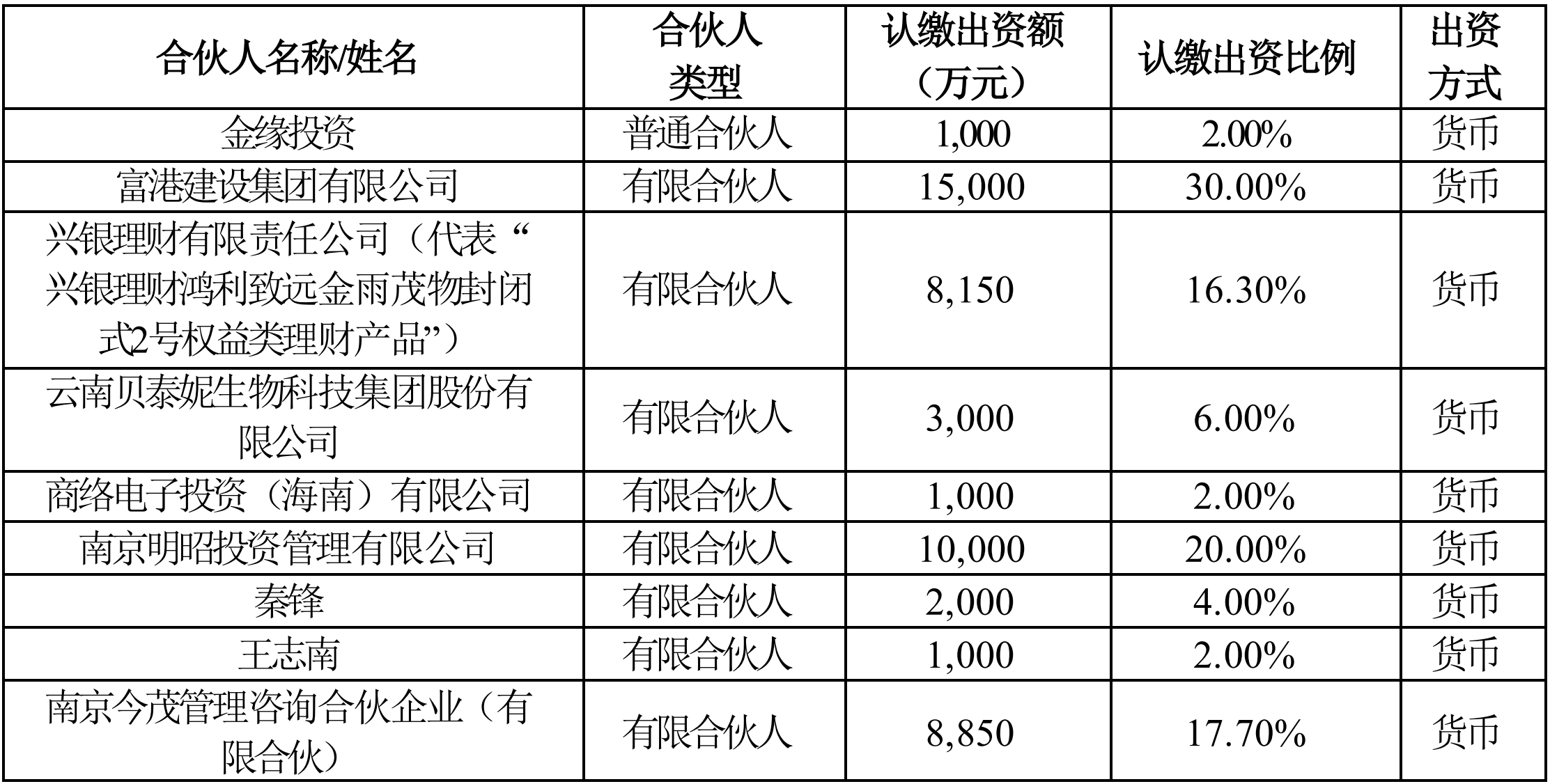 关于此次设立投资基金目的,贝泰妮在公告中表示,金缘投资系国内知名投资机构,过往业绩突出,整合资源能力强,且专注于新经济行业,重点布局新材料与智能制造、新能源与生态保护、新医药和大健康、创新科技领域,积极提供相关产业的上下游资源及业务协同;此次投资有助于公司整合利用各方优势发掘投资机会,通过与专业投资管理团队的合作,在保障主营业务稳定发展的情况下,借助专业投资机构的优势和资源,拓展公司项目投资渠道,提升公司资本运作能力及效率。