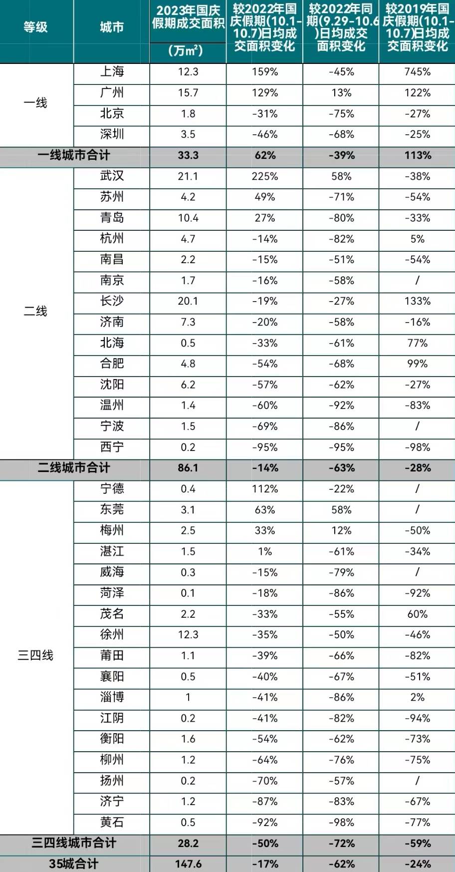 从广州、深圳来看,“双节”期间,广州网签商品住宅15.7万平方米,较2022年同期日均增加13.2%;深圳新房住宅成交336套,成交面积3.45万平方米,与节前一周相比成交套数减少42%,成交面积减少41%。
