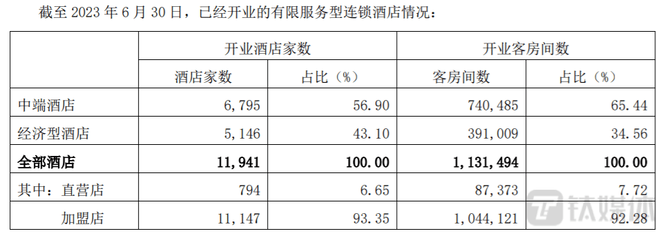 在轻资产战略下,今年上半年,新开业酒店585家,开业退出酒店204家,净增开业酒店381家,其中直营酒店减少42家,加盟酒店增加423家。并且,按照半年报中的数据,目前已经开业的酒店数量为11941家,其中加盟店为11147家,加盟店所占比例约为93%,在赵焕焱看来这个比例还有可能在接下来的时间持续增大。