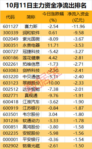华为汽车热门股赛力斯主力资金净流出近12亿元。