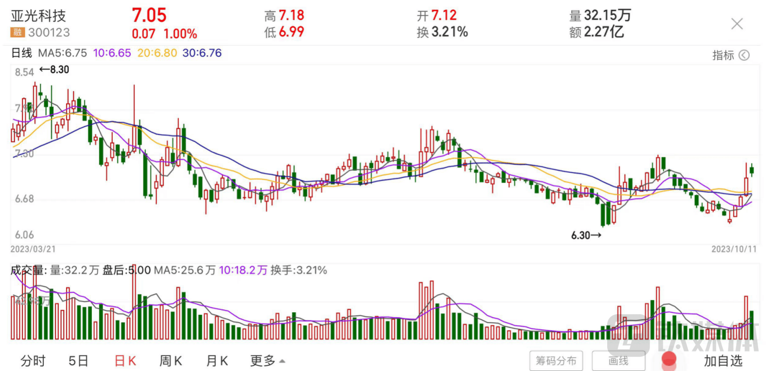 二级市场方面,10月11日,公司股价高开低走,最终股价报收7.05元,涨幅1%,当前总市值为72.04亿元。