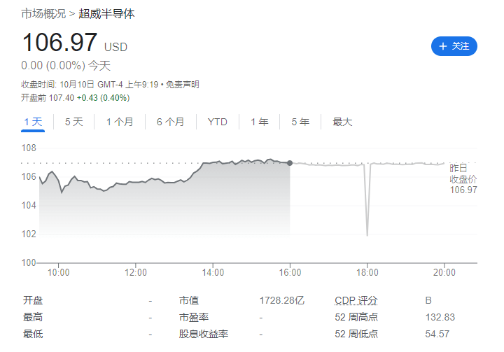 截至IT之家发稿,AMD 美股盘前只有 0.40% 的涨幅,目前报价 107.40 美元每股,市值约 1728.28 亿美元。