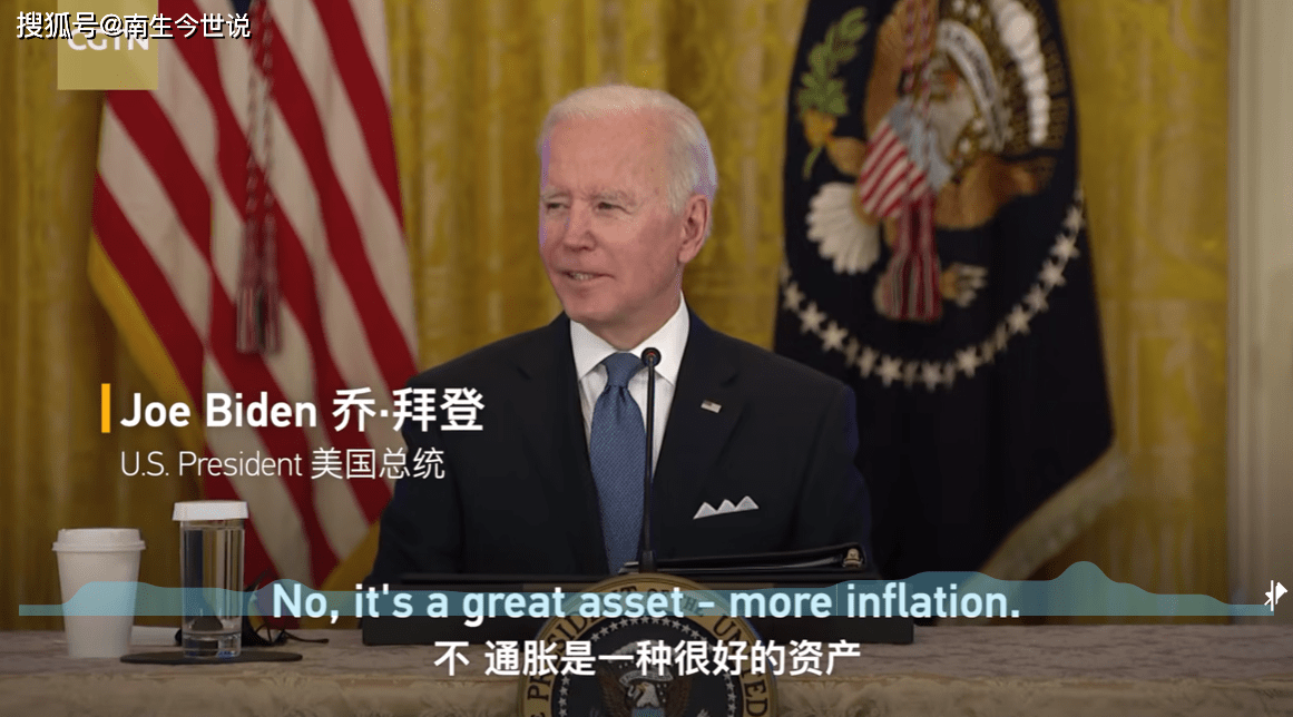 美国总统拜登在接受福克斯新闻记者杜西提问时曾表示,通胀不是负担,是美国的资产。他的原话是:不,通胀是一种很好的资产,而不是负担,你这个蠢货。