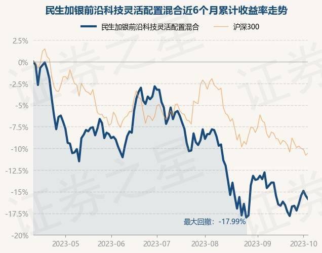 10月11日,民生加银前沿科技灵活配置混合最新单位净值为1.067元,累计净值为1.337元,较前一交易日下跌0.47%。历史数据显示该基金近1个月下跌2.2%,近3个月下跌11.16%,近6个月下跌15.85%,近1年下跌23.13%。该基金近6个月的累计收益率走势如下图: