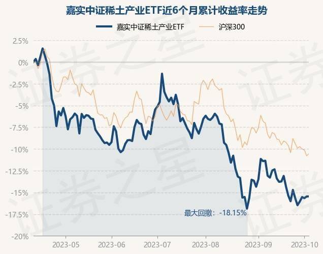 10月11日,嘉实中证稀土产业ETF最新单位净值为0.9999元,累计净值为0.9999元,较前一交易日上涨0.01%。历史数据显示该基金近1个月下跌3.39%,近3个月下跌11.86%,近6个月下跌15.51%,近1年下跌12.03%。该基金近6个月的累计收益率走势如下图: