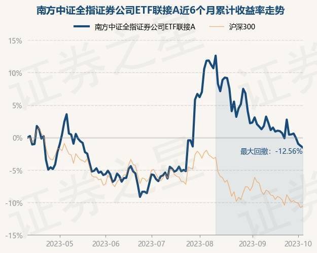 10月11日,南方中证全指证券公司ETF联接A最新单位净值为0.9885元,累计净值为0.9885元,较前一交易日下跌0.27%。历史数据显示该基金近1个月下跌4.6%,近3个月上涨4.06%,近6个月下跌1.56%,近1年上涨13.8%。该基金近6个月的累计收益率走势如下图: