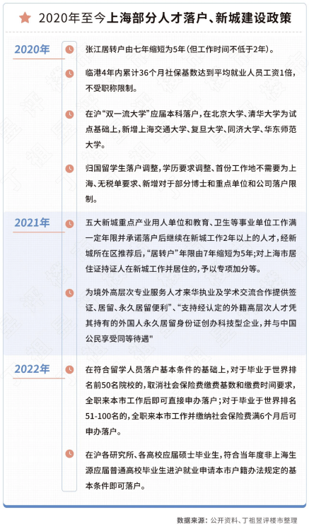 自2020年起上海陆续出台多个人才落户新政,降低落户门槛,除了对高学历人才的宽松之外,五大新城是其重点。