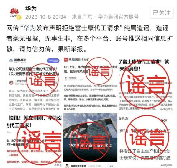 原标题:“拒绝富士康代工请求”?华为:纯属造谣