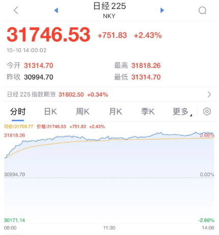 此外,今天外围市场大涨,港股反弹,日经大涨2%,欧洲开盘大涨。