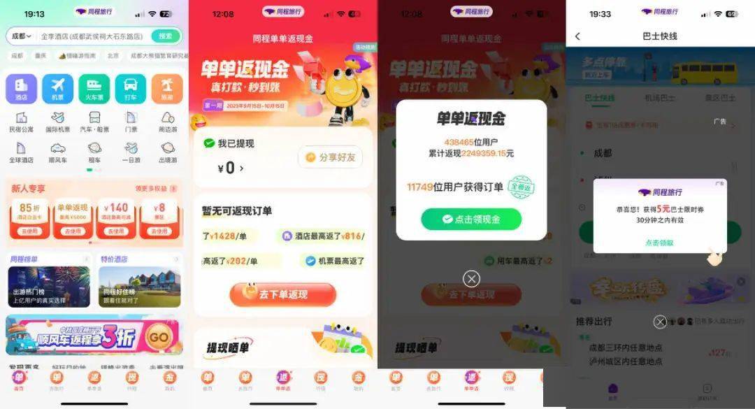在触达之后,要让下沉用户感兴趣,同程旅行在“货”、“场”上,走的也是类拼多多“补贴+返现”这条已被验证过的道路。