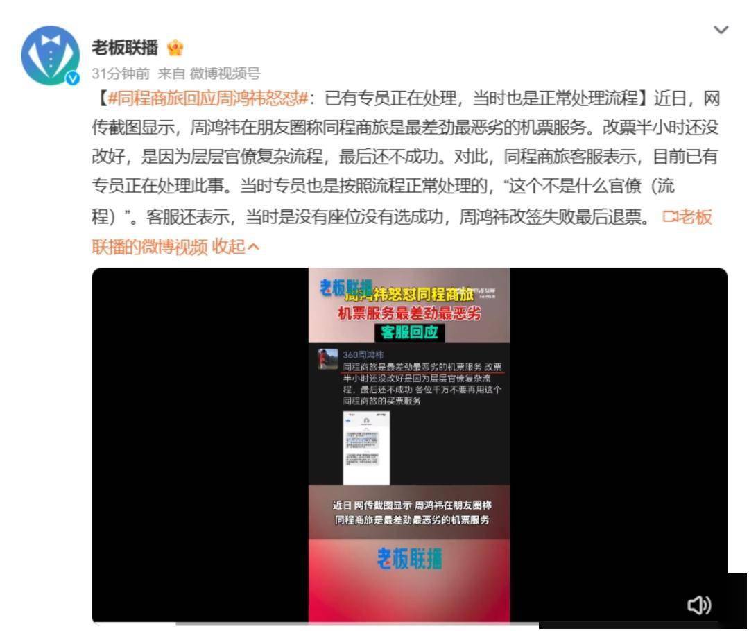 一位机票从业者刘秉(化名)认为:“对平台而言,分销代理与航司售卖之间本就存在流程周转,会有时间差。”他补充道,“不过,周鸿祎也只是以一名用户的身份,表达了自己的糟糕体验。”