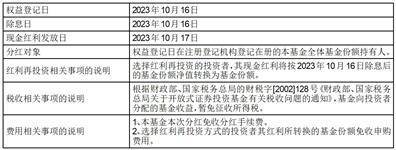 注:1、选择现金分红方式的投资者的红利款将于2023年10月17日自基金托管账户划出。