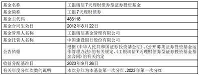 工银瑞信7天理财债券型证券投资基金2023年第一次分红公告
