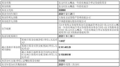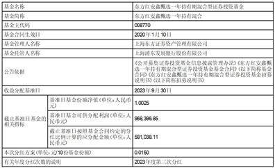 注:(1)本基金本次分红方案为每10份基金份额发放红利0.0350元,即每份基金份额发放红利0.0035元。(2)根据基金合同约定,在符合有关基金分红条件的前提下,若每季度末每10份基金份额可供分配利润金额大于等于0.01元,则本基金进行收益分配,收益分配比例不低于收益分配基准日可供分配利润的60%。