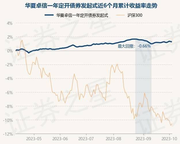 10月11日,华夏卓信一年定开债券发起式最新单位净值为1.0324元,累计净值为1.0324元,较前一交易日下跌0.03%。历史数据显示该基金近1个月上涨0.27%,近3个月上涨0.3%,近6个月上涨1.24%,近1年上涨1.15%。该基金近6个月的累计收益率走势如下图: