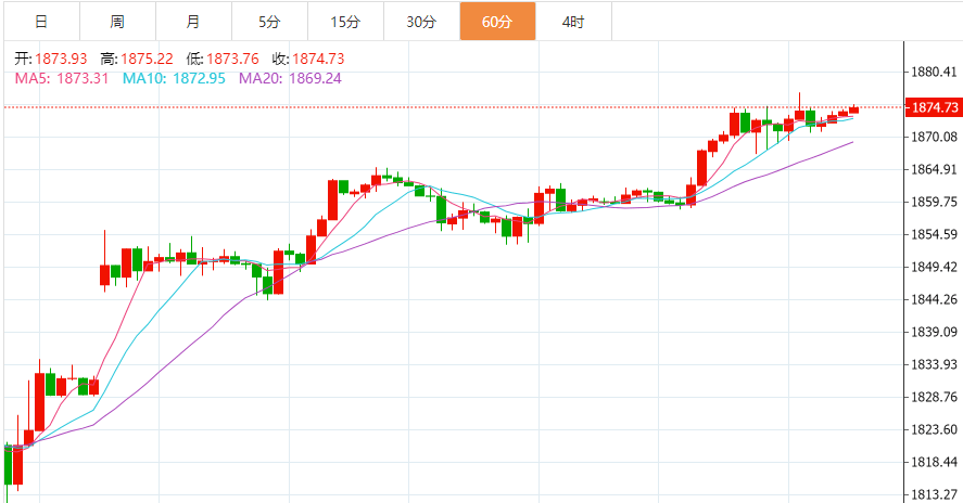 4小时级别黄金昨日跳空高开,白盘维持星K整理,晚间持续反弹连阳上涨走势偏强,反弹只是对前面下跌的修正,下方跳空留有缺口,大涨的可能性不大,今日继续关注反弹后的承压下跌回补缺口,另外,即便黄金当前走势发生反转也有二次探底动作。1小时图来看,黄金昨日高开后回踩1844后反弹,此位成为今天多头分水岭,随着多头的连续发酵,今日上方阻力会加重一些,价格目前触及至日线阻力位置,这也是价格首次修正到日线阻力,我们需要关注市场进一步承压下跌,另外下方周缺口还没有回补,同时一小时上价格呈现背离现象,下方则关注1845-1835区域,待价格完全回补缺口后我们再重新做具体分析看继续承压还是再度修正。综合来看,今日黄金短线操作思路上贺博生建议反弹做空为主,回调做多为辅,上方短期重点关注1885-1890一线阻力,下方短期重点关注1863-1858一线支撑。