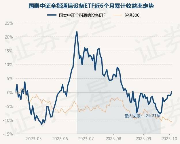 10月11日,国泰中证全指通信设备ETF最新单位净值为1.1302元,累计净值为1.1302元,较前一交易日上涨1.32%。历史数据显示该基金近1个月上涨2.06%,近3个月下跌11.68%,近6个月上涨0.21%,近1年上涨41.17%。该基金近6个月的累计收益率走势如下图:
