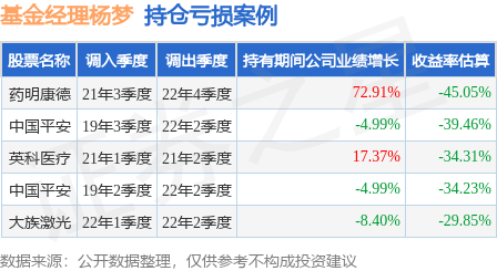 杨梦管理的博道消费智航A基金在21年3季度买入药明康德,在持有1年又1个季度后在22年4季度卖出。持有期间的估算收益率为-45.05%,持有期间药明康德在2021年到2022年的年报归属净利润增幅达72.91%。