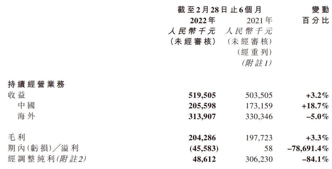 十一假期结束后,其截至2023年2月28日止6个月的中期业绩公告也同步刊发。