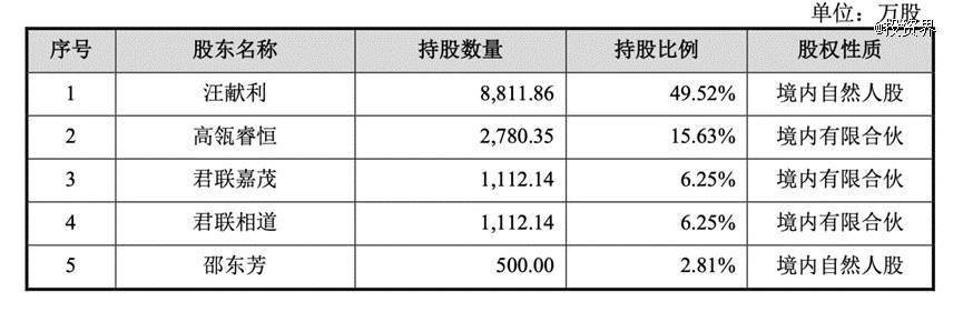 招股书显示,汪献利、邵东芳夫妇合计直接持有52.33%的公司股份,为公司实控人,其中,董事长汪献利一人持股49.52%。创业十余年,这对夫妇即将迎来人生第一个IPO。
