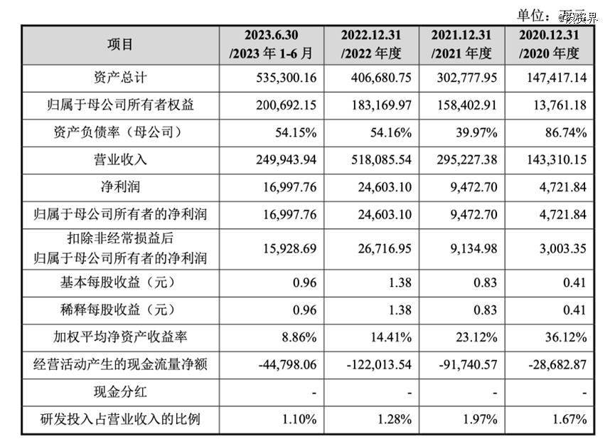 就是这样一类产品,为永臻股份贡献了9成以上的营收。根据招股书,2020年、2021年、2022年及2023年上半年,永臻股份实现营业收入分别约为14.33亿、29.52亿、51.81亿及24.99亿。同期净利润分别约为4721.84万、9472.70万、2.46亿及1.70亿。