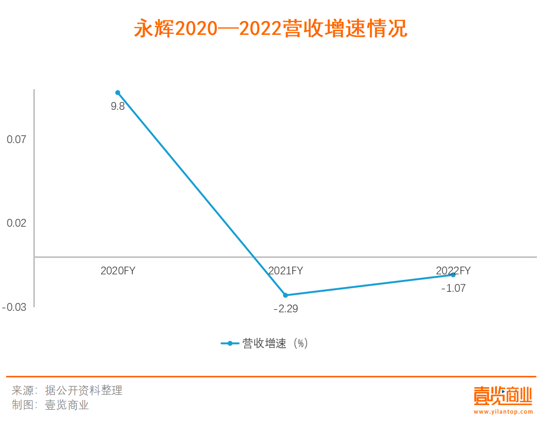 尽管在今年中旬永辉发布的三季度财报显示永辉已经实现扭亏为盈,但是从近三年永辉的营收来看,永辉目前的营收增速情况不容乐观,2020年营收931.99亿元,营收增速为9.8%;2021总营收为910.62亿元,营收增速为-2.29%;2022年营收为900.91亿元,营收增速为-1.07%,仅有2020年一年增速为正,连续两年营收规模都在下滑。