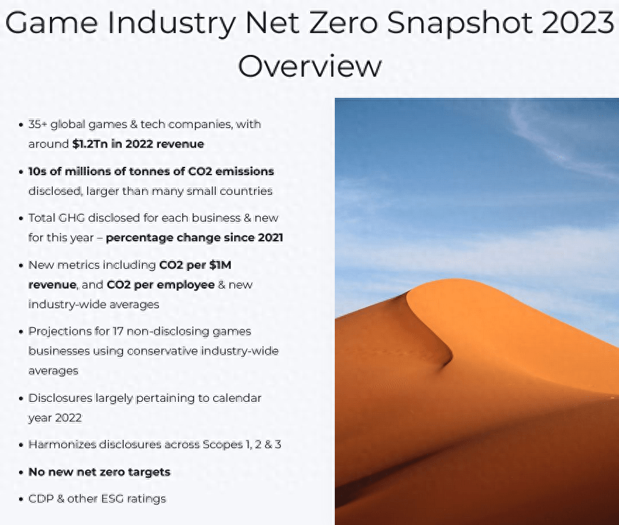 新的报告调查了 2022 年游戏行业的二氧化碳排放量、与上一年相比的变化情况,以及净零目标的进展状况。