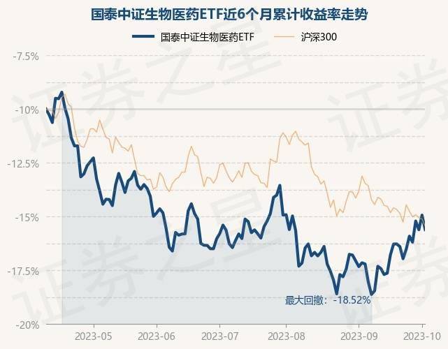 10月10日,国泰中证生物医药ETF最新单位净值为1.116元,累计净值为1.116元,较前一交易日下跌1.5%。历史数据显示该基金近1个月上涨6.84%,近3个月上涨1.11%,近6个月下跌11.23%,近1年上涨3.02%。该基金近6个月的累计收益率走势如下图: