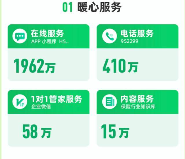 《报告》显示,截至2023年上半年,众安已累计服务超5亿用户,出具保单数累计574亿张。在线服务量(包括APP、小程序、H5等)达1962万,相比去年同期服务量增长了37%,线上内容服务也从12.5万条增长到15万条。