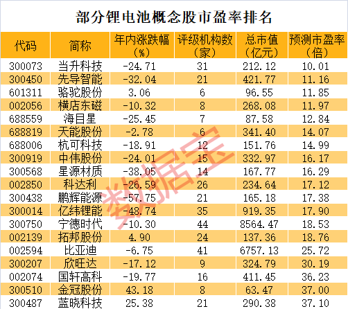 机构关注度较高且上半年净利逆市上涨的锂电池概念股,有望成为反弹龙头。数据宝统计,5家以上机构评级个股中,有19只个股上半年净利同比增长,金冠股份、国轩高科、比亚迪、宁德时代等个股上半年净利同比增速均超100%。较低的估值也有望支撑公司股价反弹。当升科技、先导智能、骆驼股份等14股机构一致预测今年市盈率低于20倍。(数据宝 陈见南)