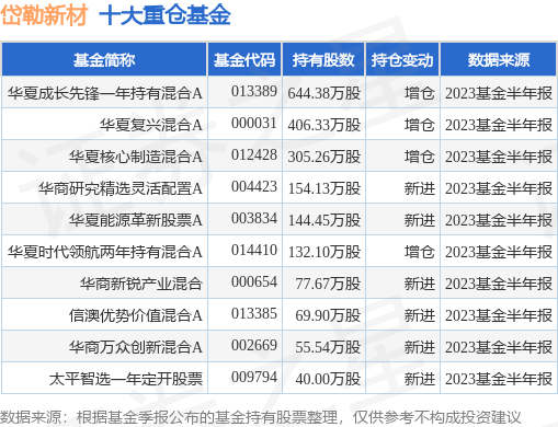 根据2023基金半年报公募基金重仓股数据,重仓该股的公募基金共47家,其中持有数量最多的公募基金为华夏成长先锋一年持有混合A。华夏成长先锋一年持有混合A目前规模为11.08亿元,最新净值0.804(10月11日),较上一交易日上涨0.42%,近一年下跌6.44%。该公募基金现任基金经理为郑泽鸿。郑泽鸿在任的基金产品包括:华夏能源革新股票A,管理时间为2017年6月7日至今,期间收益率为158.4%;华夏核心制造混合A,管理时间为2021年6月22日至今,期间收益率为-15.53%;华夏时代领航两年持有混合A,管理时间为2022年6月14日至今,期间收益率为-7.32%。