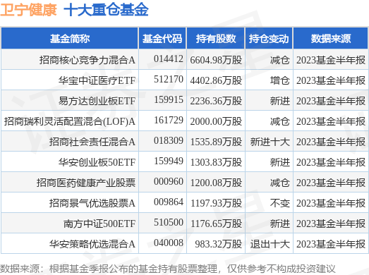 重仓卫宁健康的前十大公募基金请见下表: