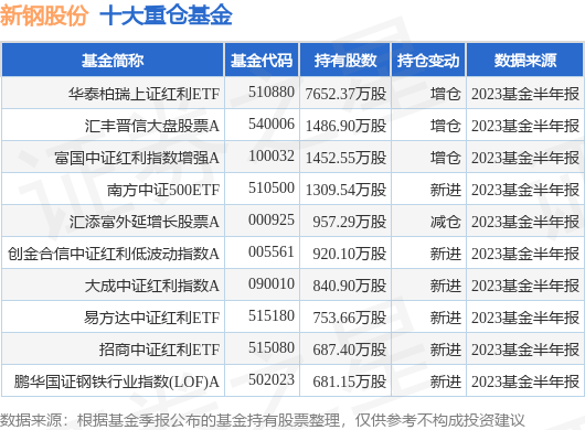 根据2023基金半年报公募基金重仓股数据,重仓该股的公募基金共143家,其中持有数量最多的公募基金为华泰柏瑞上证红利ETF。华泰柏瑞上证红利ETF目前规模为159.31亿元,最新净值3.0329(10月11日),较上一交易日下跌0.31%,近一年上涨7.73%。该公募基金现任基金经理为柳军 李茜。柳军在任的基金产品包括:华泰柏瑞沪深300ETF,管理时间为2012年5月4日至今,期间收益率为62.23%;华泰柏瑞沪深300ETF联接A,管理时间为2012年5月29日至今,期间收益率为79.7%;华泰柏瑞中证500ETF联接A,管理时间为2015年5月13日至今,期间收益率为-24.94%。李茜在任的基金产品包括:华泰柏瑞中证光伏产业ETF,管理时间为2020年12月7日至今,期间收益率为-0.89%;华泰柏瑞中证港股通50ETF,管理时间为2020年12月30日至今,期间收益率为-24.27%;华泰柏瑞中证沪港深互联网ETF,管理时间为2021年1月25日至今,期间收益率为-40.6%。