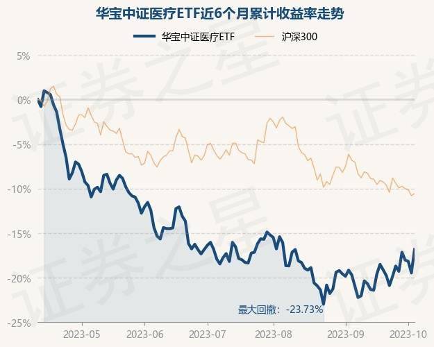 10月11日,华宝中证医疗ETF最新单位净值为0.4215元,累计净值为1.2645元,较前一交易日上涨3.26%。历史数据显示该基金近1个月上涨4.41%,近3个月上涨0.52%,近6个月下跌16.86%,近1年下跌6.25%。该基金近6个月的累计收益率走势如下图:
