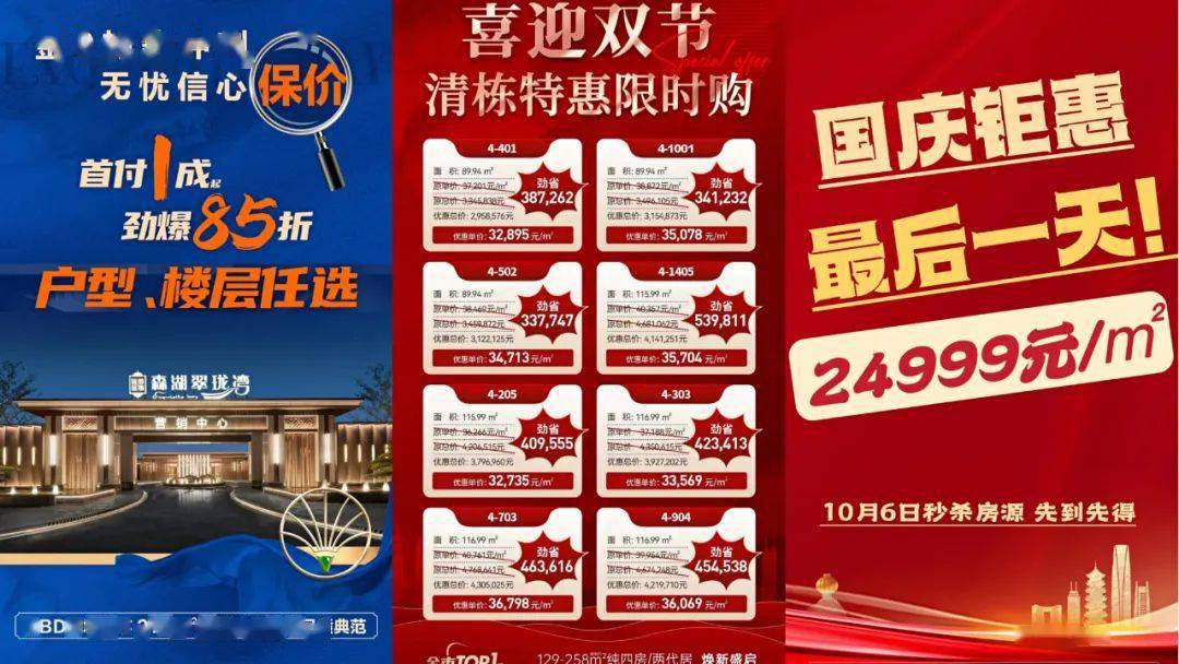 大岭山新盘珑远首铸松湖翠珑湾直接打出“购房85折户型楼层任选”;珑远万江翠珑湾在国庆最后一天推出特惠房源,单价24999元/㎡;绿城桂语旗峰清栋特惠,最高直降约54万元。