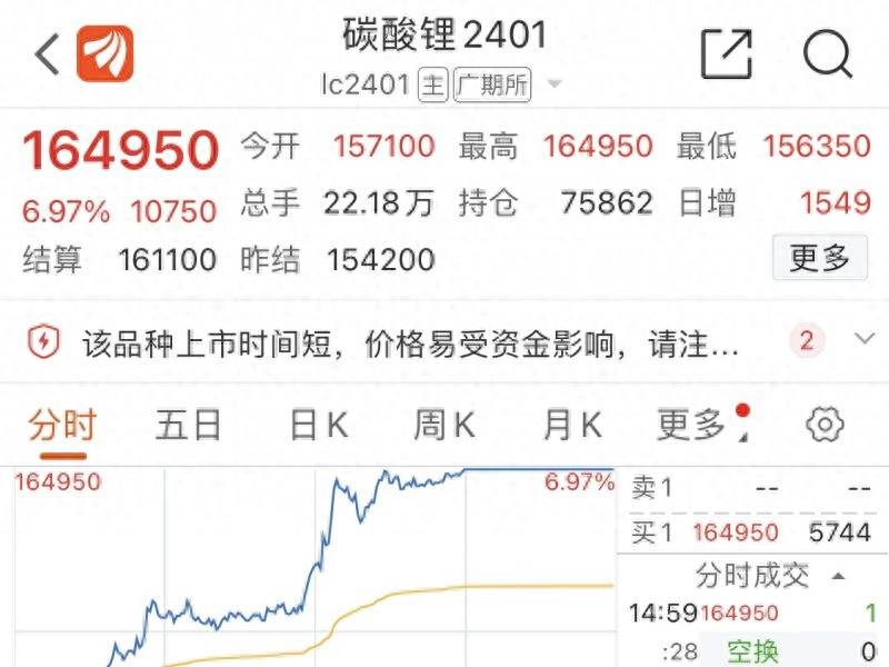 能源金属板块起飞?碳酸锂期货所有合约涨停,赣锋锂业涨8.46%,天华新能、天齐锂业跟涨|快讯