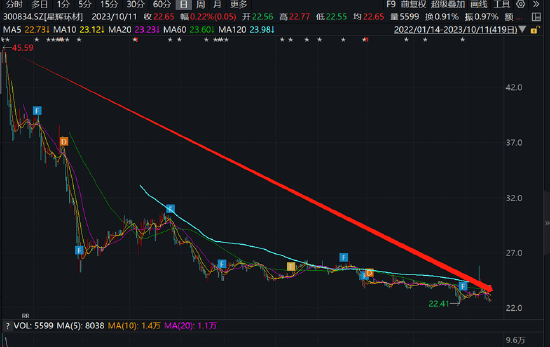 上市首日,星辉环材开盘报51.98元,跌幅6.46%,跌破发行价,盘中最高价52.34元,收报50.50元。此后该股股价震荡下行,如今股价跌至22.65元/股(截止10月11日)。