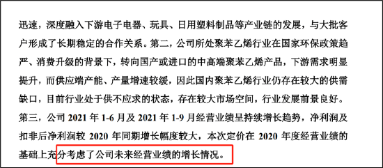 第三,公司 2021 年 1-6 月及 2021 年 1-9 月经营业绩呈持续增长趋势,净利润及扣非后净利润较 2020 年同期增长幅度较大,本次定价在 2020 年度经营业绩的基础上充分考虑了公司未来经营业绩的增长情况。