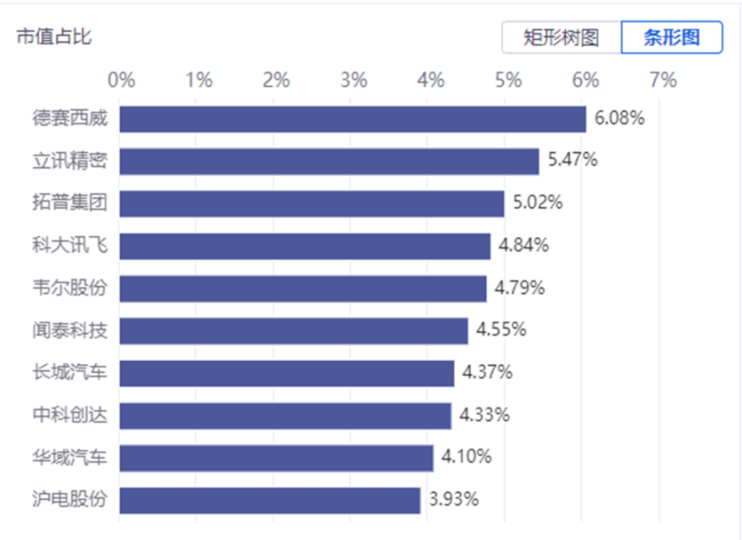 这个指数非常特殊,它专门选取为智能汽车提供终端感知、平台应用的公司,主要就是各类电子硬件产品和汽车控制软件。